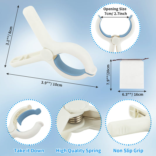 QOPAHI 6pcs Towel Clips for Sun Loungers with Drawstring Organizer(Blue)