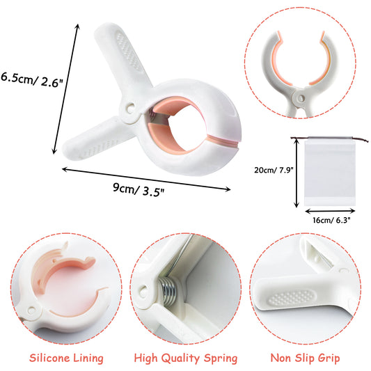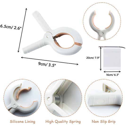 QOPAHI 6pcs Towel Clips for Sun Loungers with Drawstring Organizer(khaki)