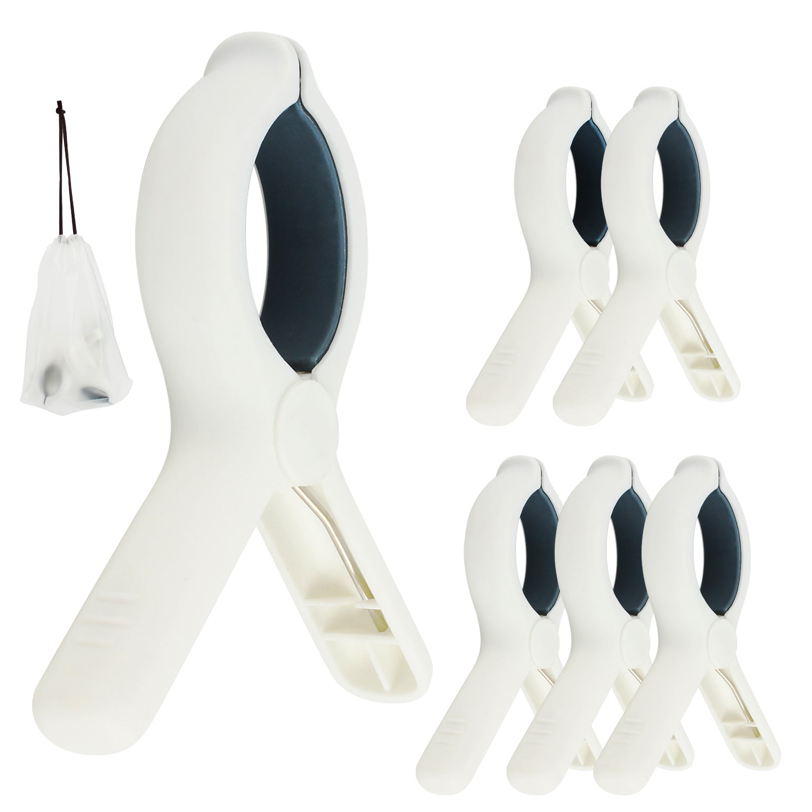 QOPAHI 6pcs Towel Clips for Sun Loungers with Drawstring Organizer(Blue)
